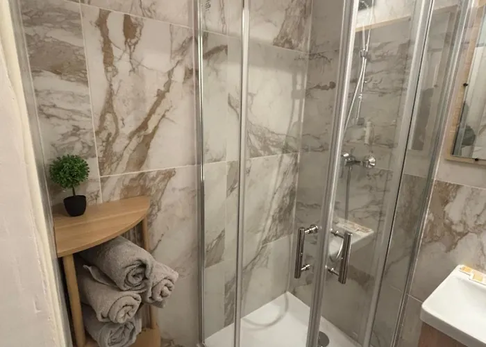 För extra bekvämlighet finns en separat toalett och en dusch i den här lägenheten. Du kan också utnyttja hårtorkar, badlakan och handdukar i badrummet.